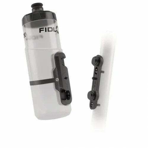 Fidlock Twist magnetisk flaskeholder med 600ml flaske. Flaskeholder magneten fanger magneten på flasken og trækker den på plads flasken sidder sikkert , uden at rasle.Et hurtigt vrid og flasken er løs igen.Fidlock magneten skrues på stellet gevindbøsninger hvor flaskeholderen normalt monteres.Komplet sæt med magneter og 600ml flaske i BPA frit polypropylen.Samlet vægt 125gram. Design Farve Klar