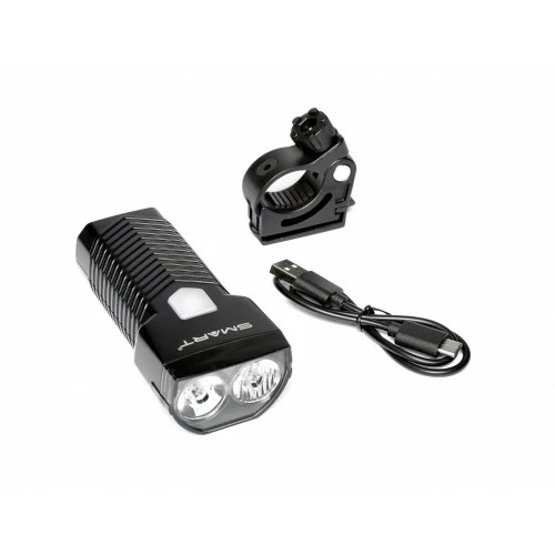 SPECIFIKATIONER: Pære: Nichia LED pære med høj effektVægt: 162 grambatteri: 5000mAhOpladning: Hurtig via USB-C (opladerkabel inkluderet)55% kølelegme i aluminiumDimensioner: 108,9×52,4×36,3 mm (ekskl. beslag) FUNKTION: Brændetid – enkelt lys (250 LM): 16 timerBrændetid – dobbelt lavt lys (500 LM): 10 timerBrændetid – dobbelt middel lys (1000 LM): 4 timerBrændetid – Dobbelt kraftigt lys (1500 LM): 2,5 timerBrændetid – Superflash (1500 LM): 40 timer Opladningstid: 3,5 timerOpladning: USB Model Varemærke Smart Design Størrelse Forlygte