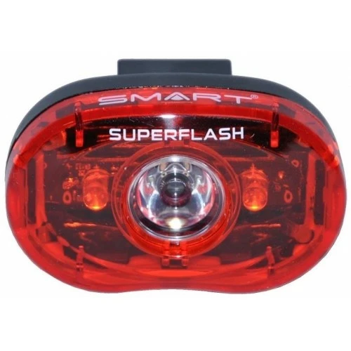 Smart Superflash leveres med batterier og lygteholder. Lygten passer til sadelpinde fra 25,0 mm til 32,0 mm. Lygtebeslaget kan også monteres på cyklens bagstel, ved at benytte afstandstykkerne (gummi) som følger med, i beslaget. Montering på bagstellet kræver rørdiameter på minimum 5 mm. Smart Superflash giver 2 forskellige muligheder for lys – konstant lys eller flash. Baglygten er tidligere testvinder hos både Politiken og TÆNK.FUNKTIONER:0,5 Watt rød ledVisuel synsvinkel på 220 graderSynlig i en afstand af op til 1600 meterKnap til skift mellem flash eller konstant lys, on/offLyser 60 timer ved konstant lysLyser 140 timer ved blinke-funktion (flash)2 x AAA batterier medfølgerKompakt og vandtæt designLængde: 6,5 cmHøjde: 4 cmTykkelse: 2,5 cmLygteholder medfølger2 x beslag: Ø25 og Ø31 mm.Vægt (gr): 52MONTERING:Det kræver blot en stjerneskruetrækker at montere lygtebeslaget på cykelstyret. Når beslaget er fastmonteret på styret, kan forlygten nemt af- og påmonteres beslaget. Model Varemærke Smart Design Størrelse Baglygte