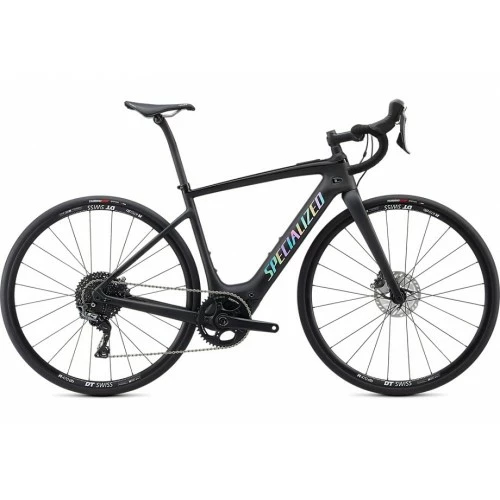 Specialized har stor tradition for at udvikle verdens bedste og mest fuldendte landevejscykler. Tarmac, Venge, Roubaix, Allez, Diverge alle sammen modeller, som dominerer i deres respektive kategorier og som alle sammen kommer med de førende teknologier. Selvom det er svært at følge op på førnævnte modeller, så har deres Turbo Creo SL alligevel formået at redefinere hele kategorien for e-landevejscykling. Den er glidende let, alsidig og utrolig fleksibelt og så giver den dig kraft til at klare selv de stejleste stigninger, den hårde modvind samt muligheden for at køre længere end du nogensinde havde troet var muligt. It’s you, only faster. Deres Turbo Creo SL E5 Comp er udstyret med en Fact 11r carbon ramme og 2.0 Future Shock. Gearsystemet er Shimano’s 1X GRX gruppe, hvormed hjulsættet er DT R470 Boost, som kommer med 28mm Turbo Pro dæk. Sadlen er den altid populære Body Geometry Power Sport, som giver en enorm stor komfort.CYKEL SPECIFIKATIONER:Ramme: FACT 11r carbon, Open Road Geometri, for-/bagaksler, fuldt integreret skrårørsbatteri, intern kabelføring, skærme/rack-beslag, Boost 12x148mmStyr: Specialiseret Hover Comp, Aluminuim, 125 mm fald, 75 mm rækkevidde m/Di2 hullerGaffel: Future Shock 2.0 “smooth boot”, Boost 12×110 mm gennemgående aksel, fladmonteret skiveStilk: Future Stem, ProTape: Roubaix S-WrapSadel: Body Geometry Power Sport, stålskinnerSadelpind: S-Works FACT carbon 27,2 mm, 20 mm offsetForbremse: Shimano GRX 810 hydraulisk skiveBagbremse: Shimano GRX 810 hydraulisk skiveBagskifter: Shimano RX812 GX, Shadow Plus, 11-speedSkiftegreb: Shimano GRX 810 hydrauliske bremsegreb, mekanisk skiftKassette: Sunrace, 11-speed, alu-spider, 11-42tKæde: Shimano HG601, 11 spdKranksæt: Praxis, Smedet alu M30, tilpasset offsetKæderring: 46TForhjul: DT R470 Boost, 12x110mmBaghjul: DT R470 Boost, 12x148mmFordæk: Specialiseret Turbo Pro, 700x28mmBagdæk: Specialiseret Turbo Pro, 700x28mmSlanger: Presta, 48mm ventilSWAT: Skærm AdapterSadelklampe: Specialiseret aluminium, 30,8 mmUI/fjernbetjening: Specialiseret TCU, 10-LED ladetilstand, 3-LED Ride Mode display, ANT+/Bluetooth®Batteri: Specialiseret SL1-320, fuldt integreret, 320WhOplader: Custom oplader, 48V System m/ SL system opladerstikLedningsnet: Specialiseret ledningsnet med ladeport Model Varemærke Specialized Design Farve Sort Størrelse Medium